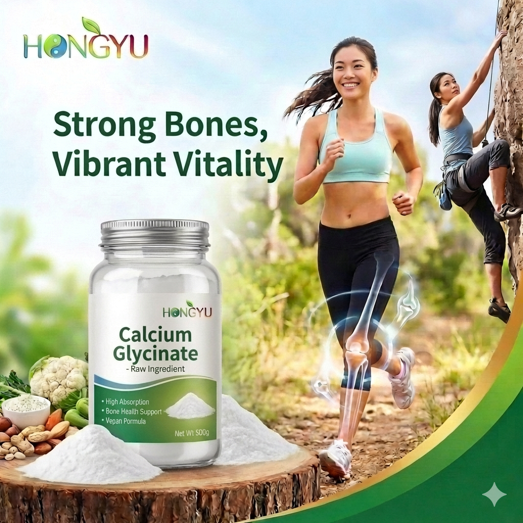 Premium Calcium Glycinate Raw Powder (CAS 35947-07-0) by HONGYU. Superior chelated calcium for maximum absorption and zero stomach irritation. Ideal for high-end bone health supplements and functional foods. Bulk wholesale available.